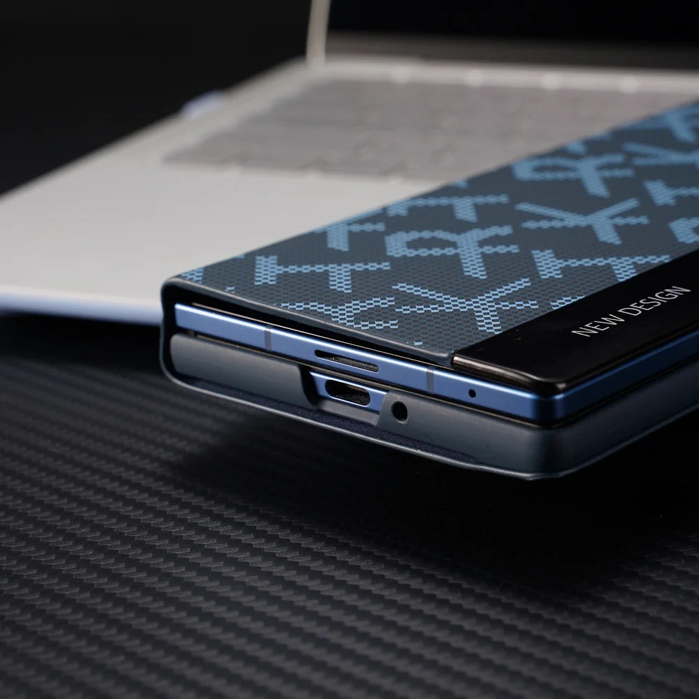 The premium patterned exterior adds a modern, professional touch, while the fold-friendly design ensures smooth opening and closing. Ideal for work, travel, and daily use, this case protects your device while keeping it sleek and comfortable in hand.