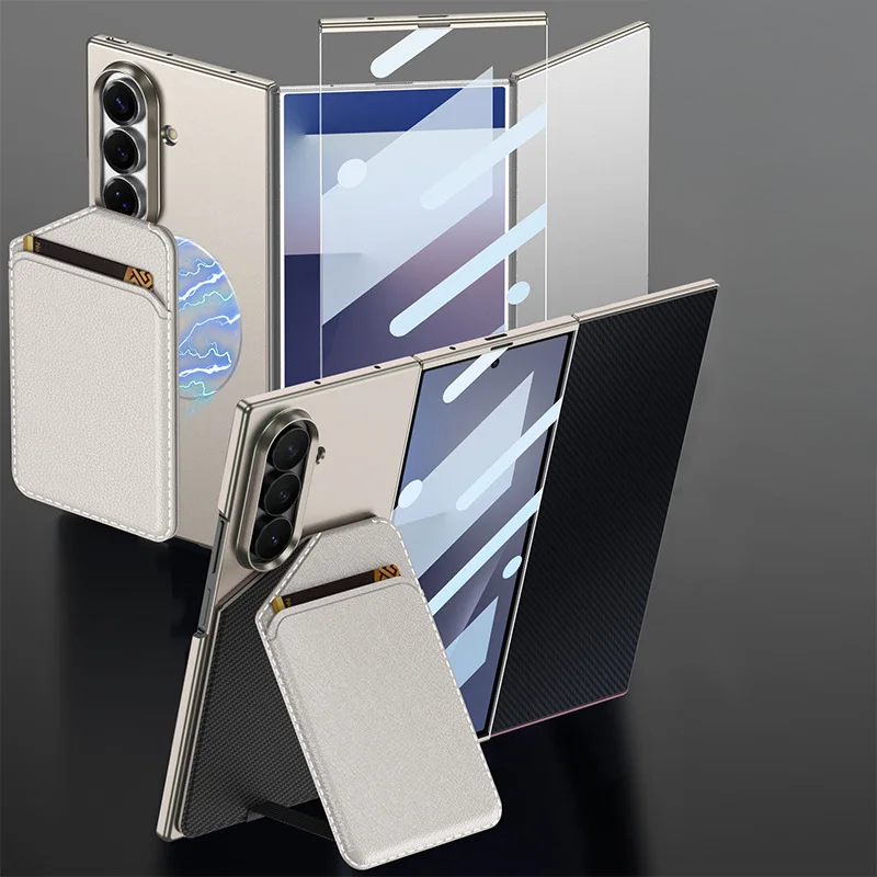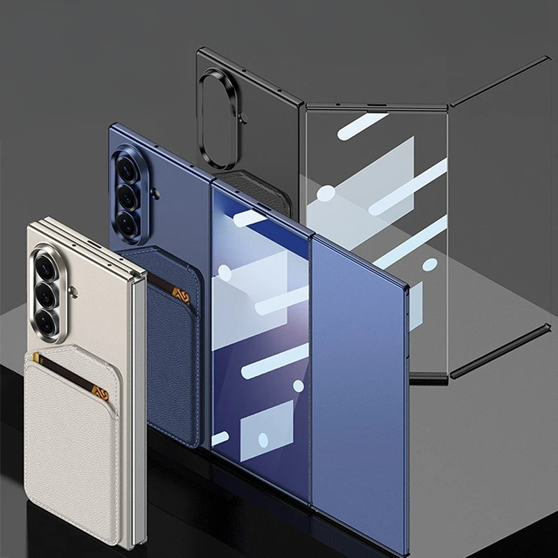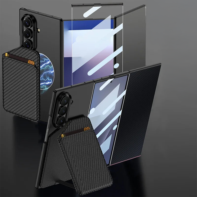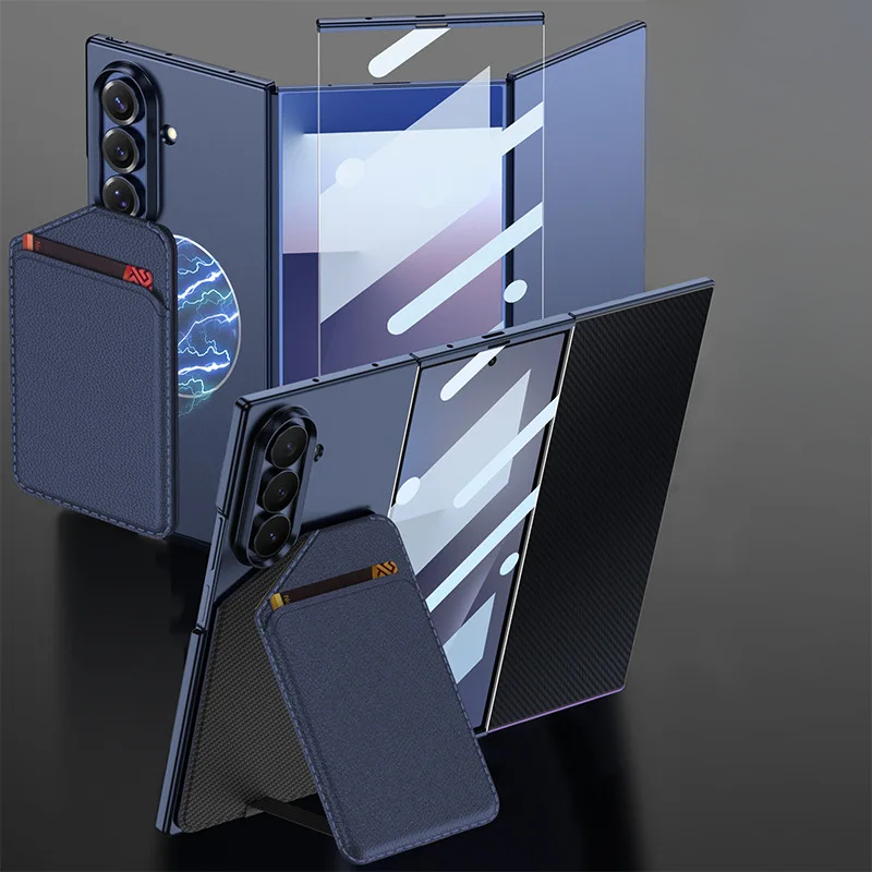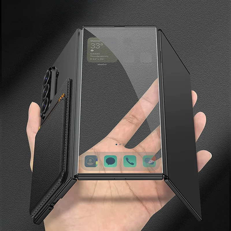 Upgrade your Galaxy Z TriFold protective case designed for daily convenience and full coverage. Featuring an ultra-thin magnetic card holder, this case keeps your essentials secure while maintaining a slim, elegant profile. The tri-fold structure offers enhanced protection for the front, hinge, and back—perfect for work and everyday use.